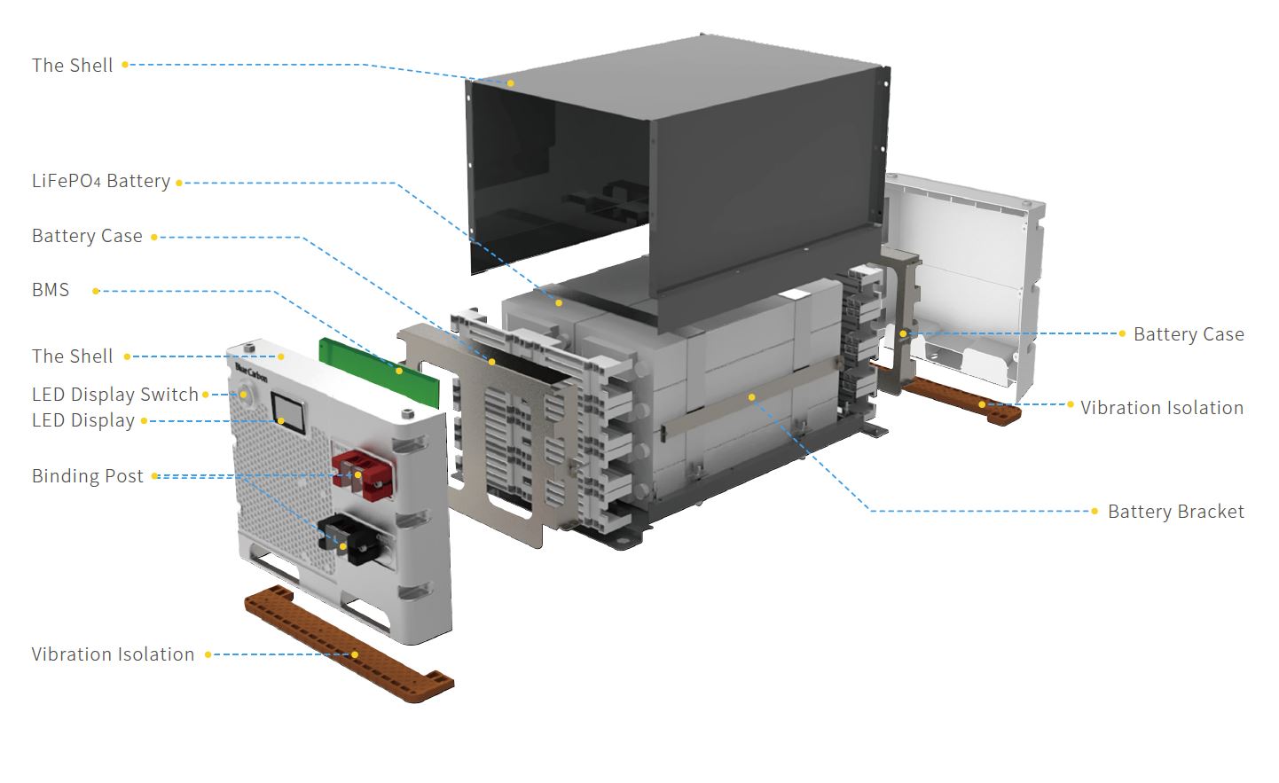 BMS integrado: protección contra sobrecarga, descarga profunda, sobrecorriente, cortocircuito y temperatura